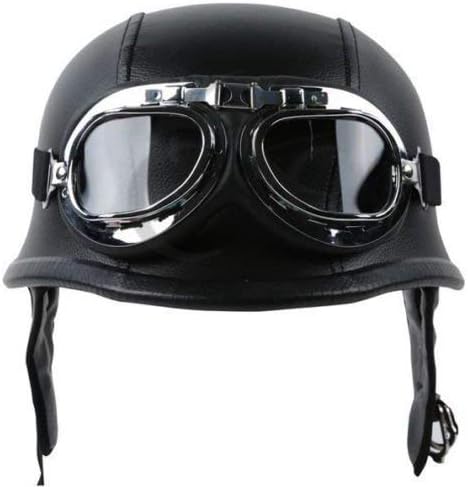 It copies the traditional styling of a classic German motorcycle helmet. The detachable goggles complete the vintage look.